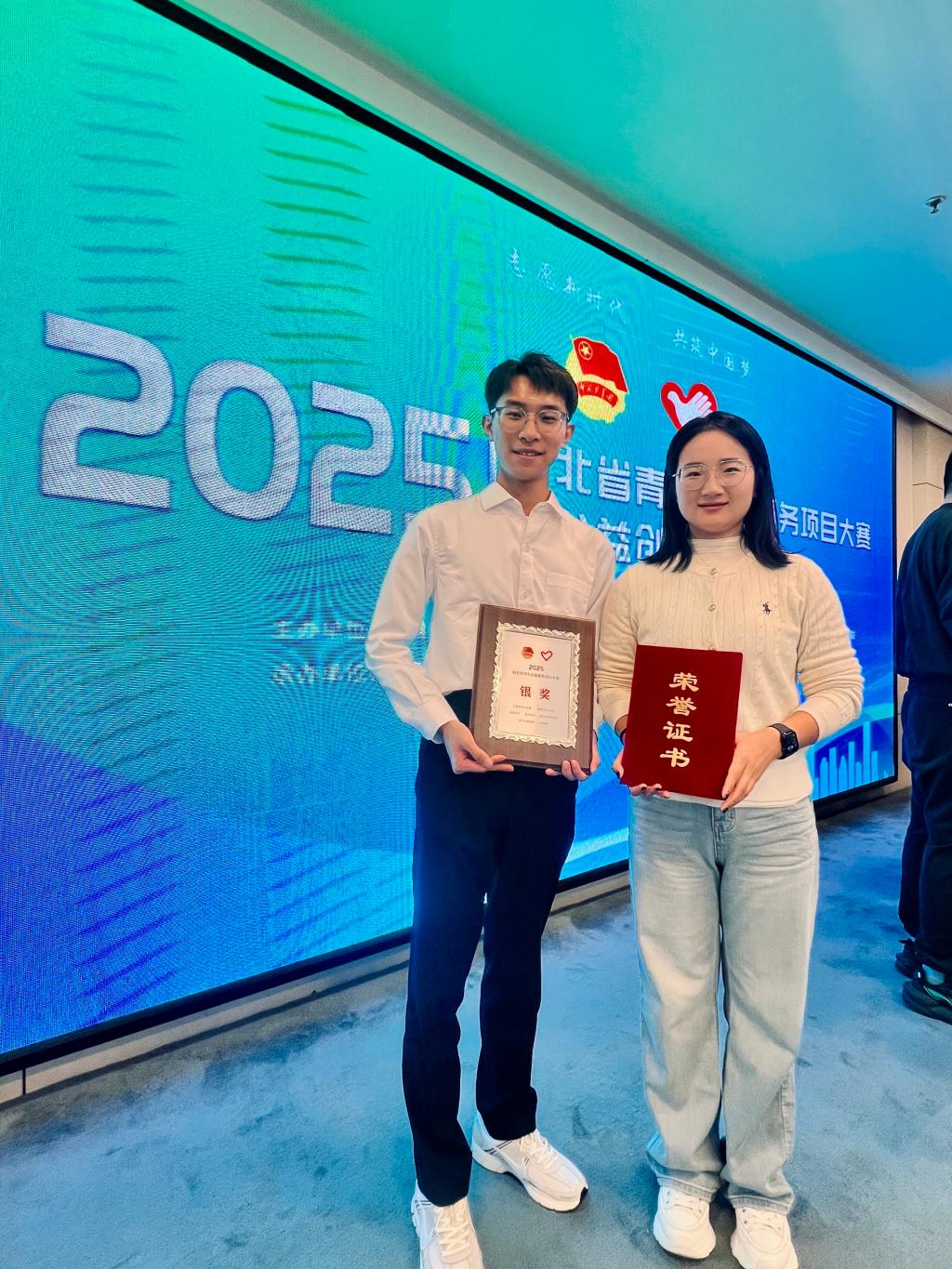 2025年10月16日,由共青团河北省委、省委社会工作部、省教育厅、省水利厅、省文化和旅游厅、省卫生健康委、省残联共同主办,河北省青年志愿者中心、河北省青年志愿者协会、共青团邯郸市委、共青团涉县县委承办的2025年河北省青年志愿服务项目大赛和公益创业赛决赛在邯郸市顺利举办。开云官网学生葛航旗代表“夕阳红”智能助老服务团队在此次比赛中脱颖而出,斩获大赛银奖,为学校赢得荣誉。