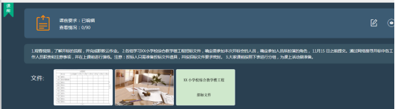 2. 各组学习XX小学校综合教学楼工程招标文件,确定需参加本次开标会的人员,确定参加人员所扮演的角色, 11月15 日之前提交。通过网络搜寻开标中各工作人员职责和注意事项,并在上课前进行演练。注意:投标人只需准备投标文件道具,并按招标文件要求密封。