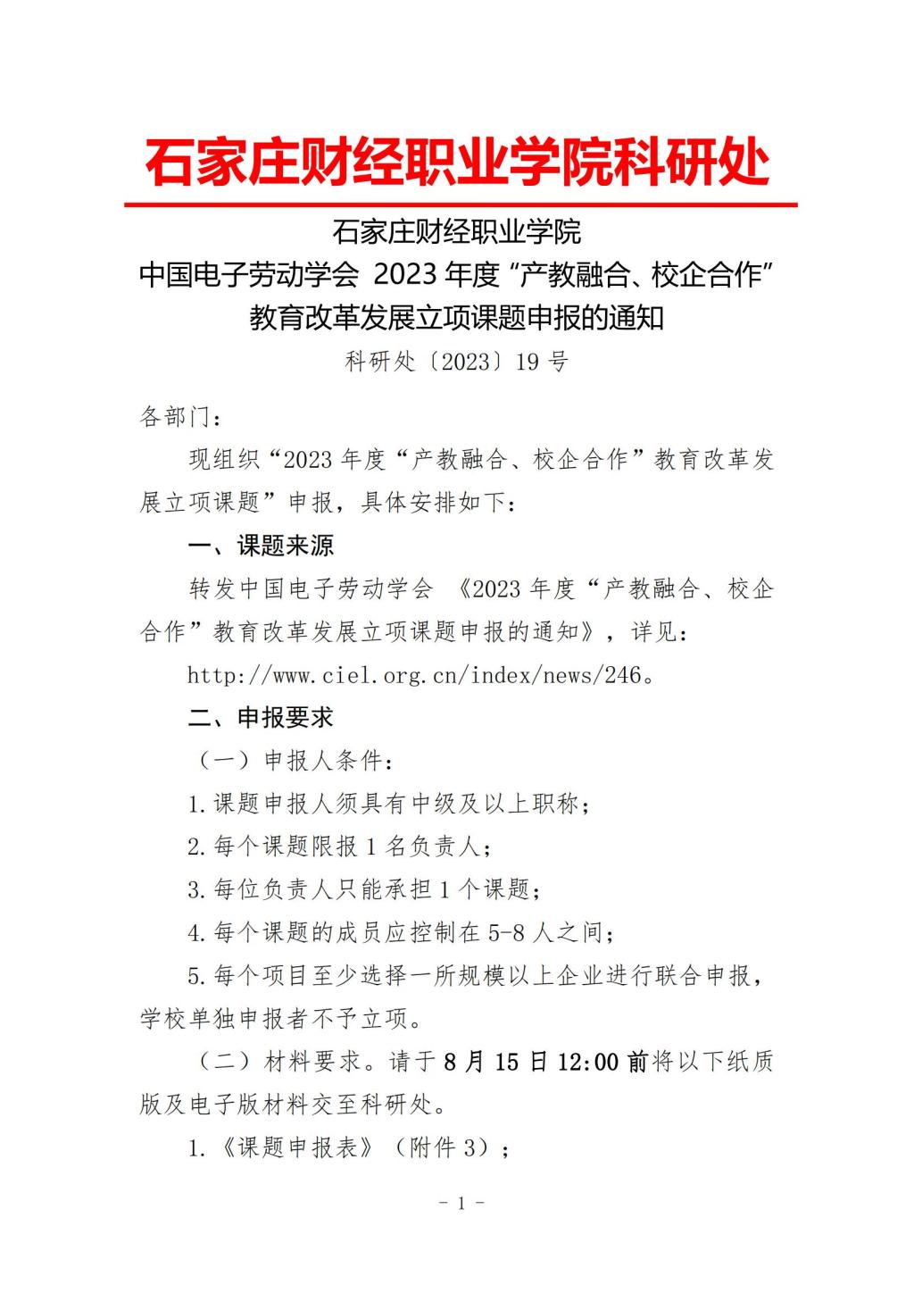 19转发中国电子劳动学会 2023年度“产教融合、校企合作”教育改革发展立项课题申报的通知.pdf
