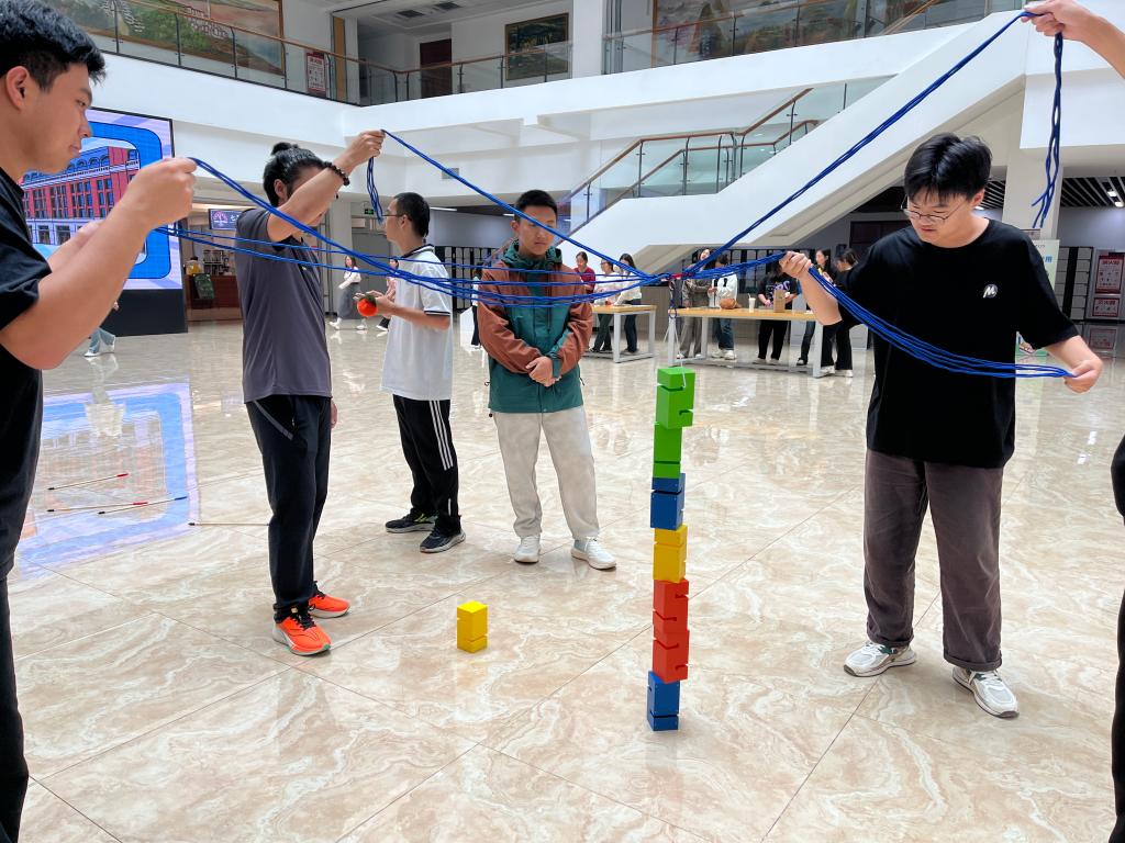 合力搭建游戏区则考验了团队协作能力。在图书馆二楼大厅设置的游戏区,参与者们需要在规定时间内完成任务,即可获得小礼品一份。大家齐心协力,共同完成任务,增强了团队凝聚力。