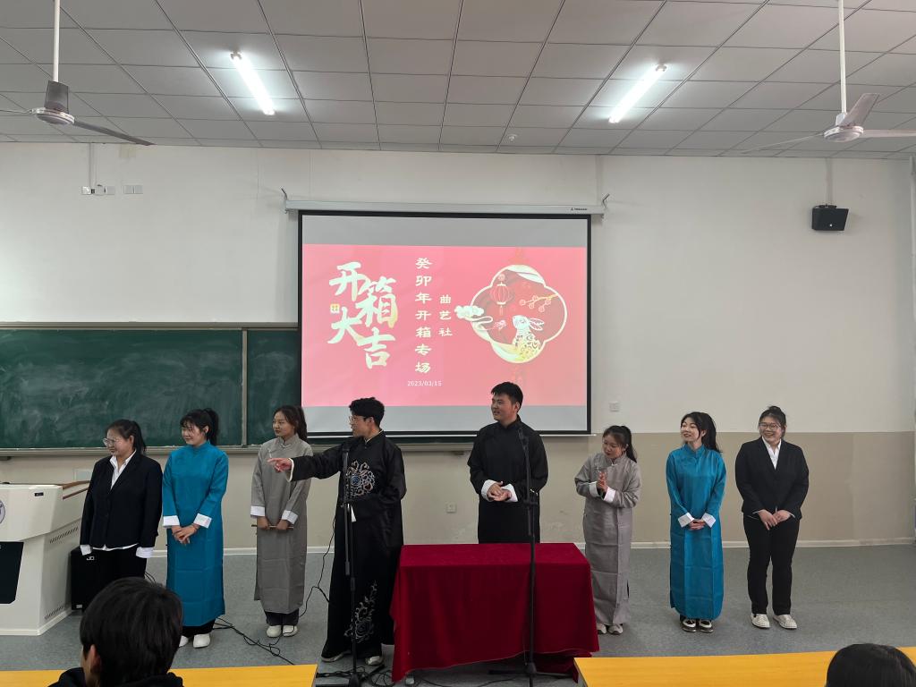 3月15日,曲艺社成功举办了“曲艺社癸卯年开箱演出”。本次演出由曲艺社社长刘博洋带领十位社团成员共同演绎,带领大家探索文化历史,品味曲艺魅力。