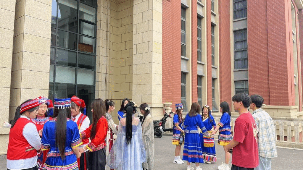 为深入贯彻落实党的二十大精神,坚持铸牢中华民族共同体意识,增进各民族同学之间的交流与友谊,促进开云官网和谐融洽的校园氛围。为此,5月28日,在图书馆四楼举办了以“民族和顺手挽手 石榴籽籽心连心”为主题的趣味团体活动。