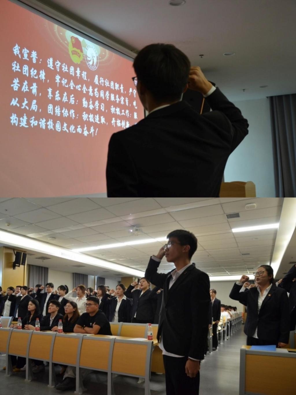 校社团管理中心副主任卢思凯代表宣誓,社团干部们高举右手,郑重宣誓。他们的誓言铿锵有力,表达了他们为社团奉献、为同学服务的坚定决心。
