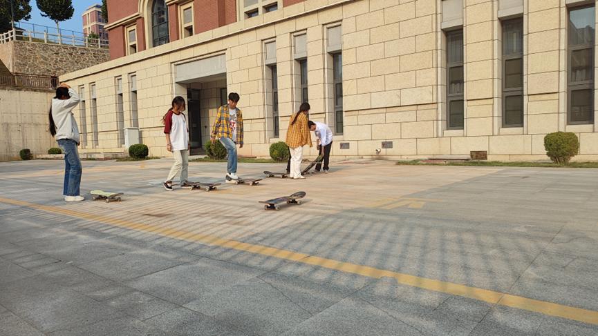 在教学环节,滑手们勇敢尝试,挑战自我。社长结合自身的滑板教学经验为大家指导动作,同学们体验了滑板的乐趣,领略到了“哪怕摔倒也要站起来面对困难”精神。让同学们在滑板的过程中,收获了成长和自信。