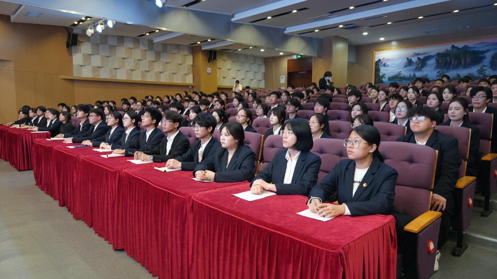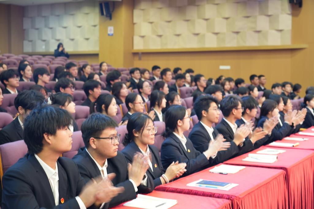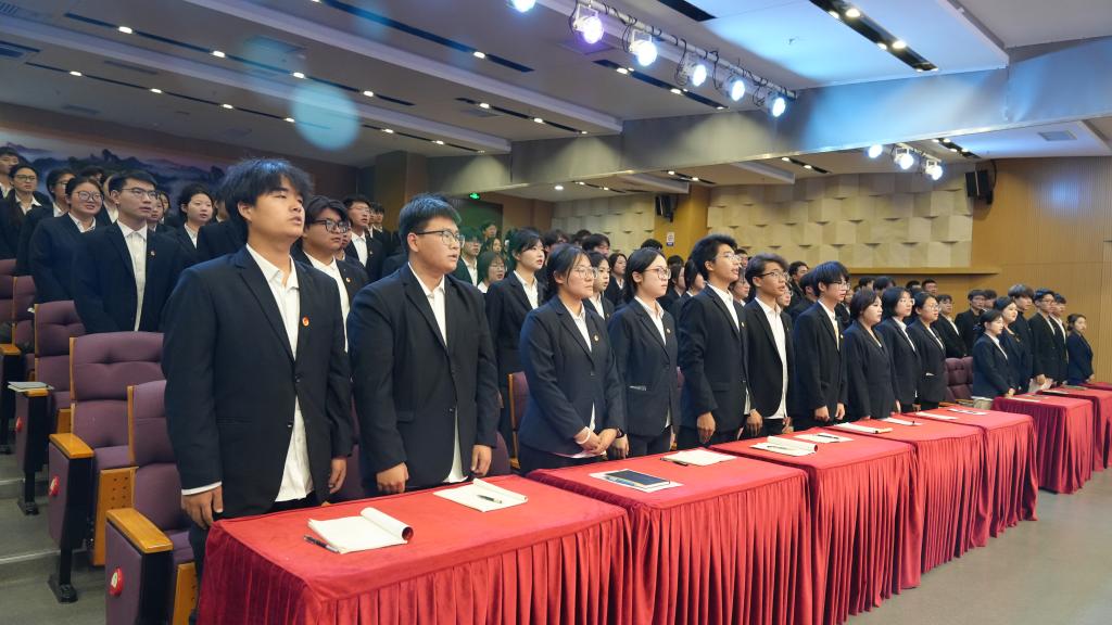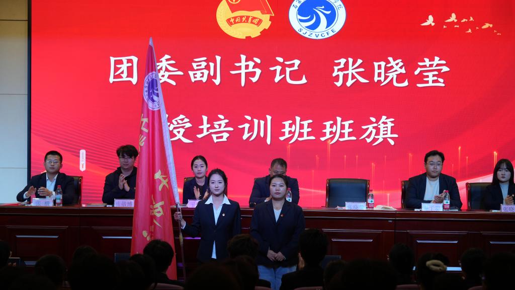 授旗环节氛围庄重,校团委副书记张晓莹向培训学员代表授旗。旗帜飘扬间,既承载着学校对社团骨干的殷切期望,也象征着全体学员传承责任、勇担使命的坚定决心。