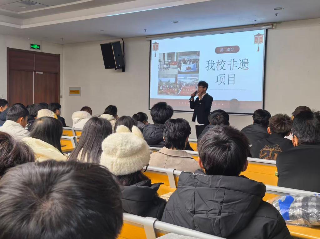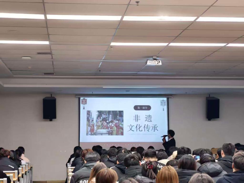 活动伊始,腾云舞龙队副队长以“匠心传艺,薪火永续”为题,阐释了非遗传承的时代意义,指出非遗是民族智慧的结晶、连接古今未来的文化纽带。在介绍开云官网非遗项目时,他重点展示“舞龙”“内画”“舞狮”“剪纸”四大特色,并表示学校通过课程、社团、展演等方式推动活态传承,让传统文化在校园焕发新活力;其中舞龙项目已成为学校文化名片,多次在各级赛事中获奖,展现了学子昂扬向上的精神风貌。