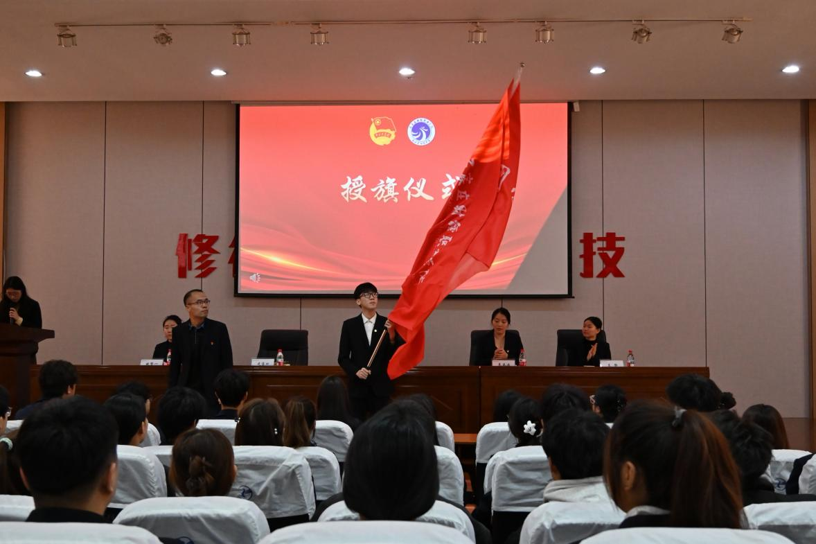 在热烈的掌声中,校团委副书记史宝田为培训班授旗。旗帜飘扬,象征使命传承。接过旗帜的培训班负责人表示,将以高度的责任感组织好本次培训,确保取得实效。