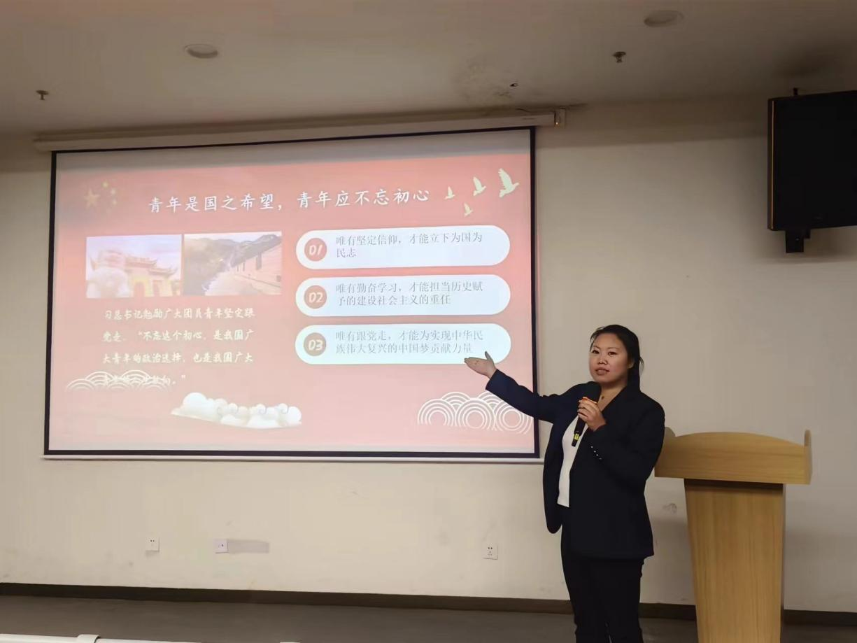 开课仪式结束后,团委副书记张晓莹为在场入团积极分子们讲授了第一节团课,通过讲解团的光辉历史号召入团积极分子们时刻牢记习近平总书记的殷殷嘱托。新时代的青年要以中国民族伟大复兴为己任,增强做中国人的志气、骨气、底气,不负时代、不负韶华,不负党和人民的殷切希望,明确应有的民族精神和应担的时代重任。
