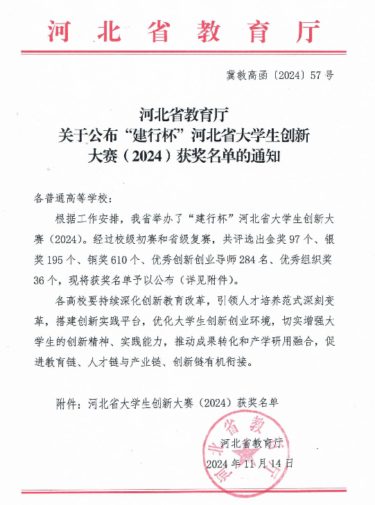 喜报|金奖!新突破!新辉煌!开云官网在河北省大学生创新大赛(2024)中凸显硬核实力