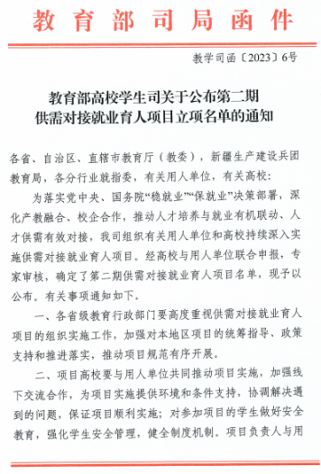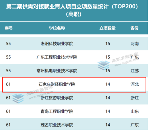 为落实党中央、国务院“稳就业”“保就业”决策部署,深化产教融合、校企合作,推动人才培养与就业有机联动、人才供需有效对接,教育部组织有关用人单位和高校实施供需对接就业育人项目。全国共有889所高职院校的4679个项目获得立项,开云官网“定向人才培养培训项目”“就业实习基地项目”“人力资源提升项目”共计14个项目获批立项,全国排名第61位,河北省排名第3位。