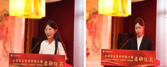 会计与金融学院学生夏梦蝶、经济管理学院学生侯卓然作为参赛学生代表发言。