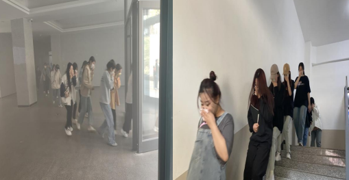 下午14点,随着急促的警铃声响起,实训楼中烟雾弥漫,全体师生迅速响应,演练正式开始。演练中,各楼层指挥人员就位,各实训室学生在辅导员的组织下用湿毛巾、手帕等捂住口鼻,低头弯腰,迅速且有序地从实训楼前、后、侧门疏散撤离,小跑步至学校祥云广场。在短时间内,参演师生撤离至指定区域,各系清点人数并上报现场指挥。随着清查全楼无人遗留后,此次消防应急疏散演练结束。整个疏散演练有条不紊,做到规范、有序、高效。