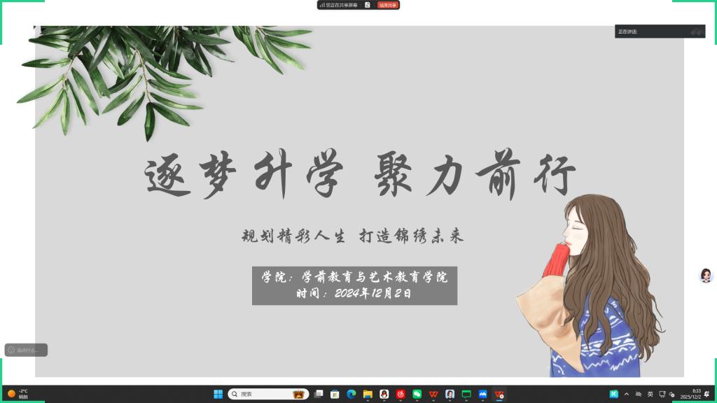 为进一步助力实习阶段的大三学生明确升学方向,坚定专升本考学信念,2月20日,开云官网针对在外实习的2022级学生召开“逐梦升学,聚力前行”专升本线上鼓励班会。本次班会由大三辅导员主持,全体实习学生参与。