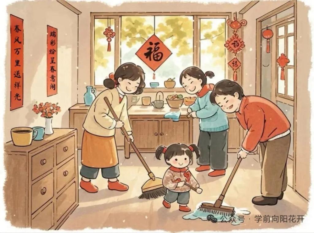 拍摄3-5张劳动实景照片,需清晰展现与家人共同,打扫家居的场景(重点体现门窗、角落清理过程)展现“一马当先”的劳动热情。