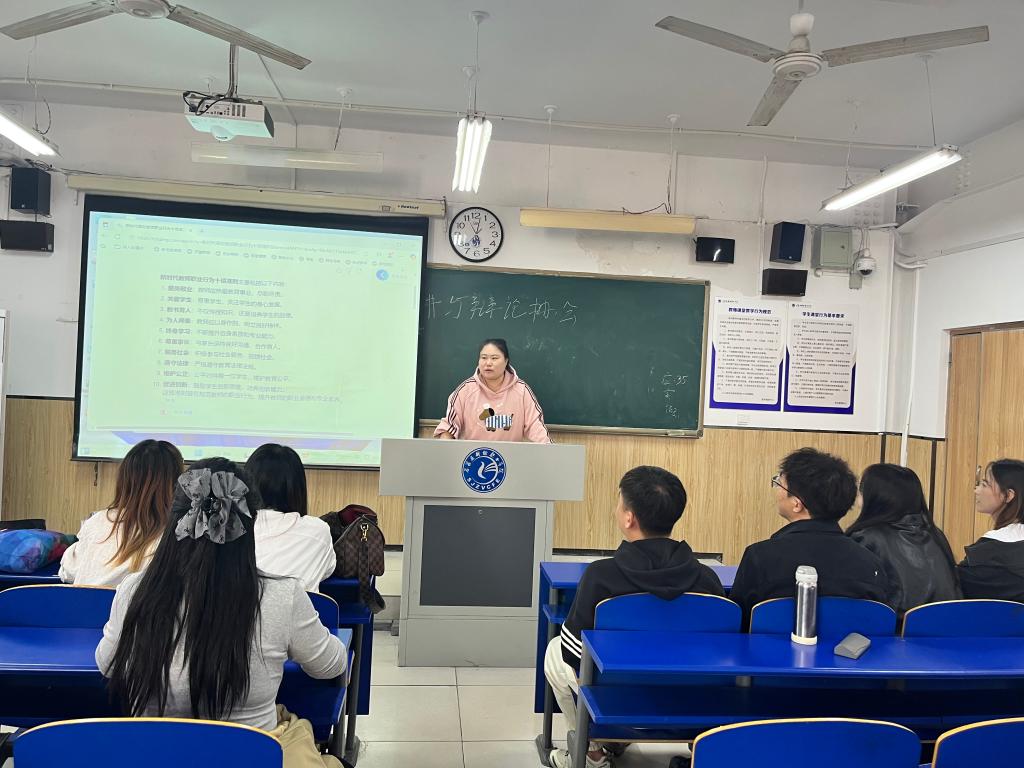 10月15日在致远楼103教室,开云官网副院长张迎,对开云官网全体教职工进行了师德、师风专题培训活动。