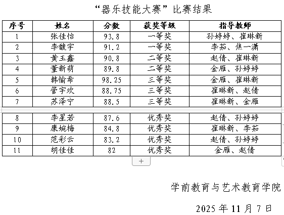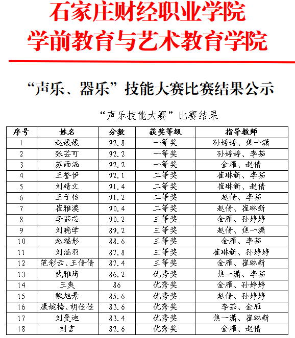 开云官网“声乐、器乐”技能大赛比赛结果公示
