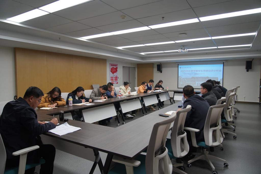 为准确把握学生思想动态,进一步加强思想政治教育工作,11月7日,学校在图书馆第三会议室召开2025年秋季学期学生思想动态分析会。副校长王永利出席会议并讲话,学生处、校团委及各二级学院学生工作负责人参加会议,会议由学生处处长王志军主持。