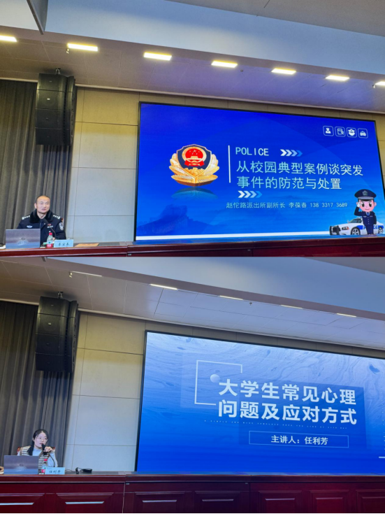 随后,针对各二级学院前期征集的培训需求,赵佗路派出所副所长李葆春、学校心理健康教育指导中心任利芳老师分别就“校园突发事件处理”与“大学生常见心理问题及应对方式”进行了专题授课,内容紧贴一线工作实际,提供了宝贵的实操指南。