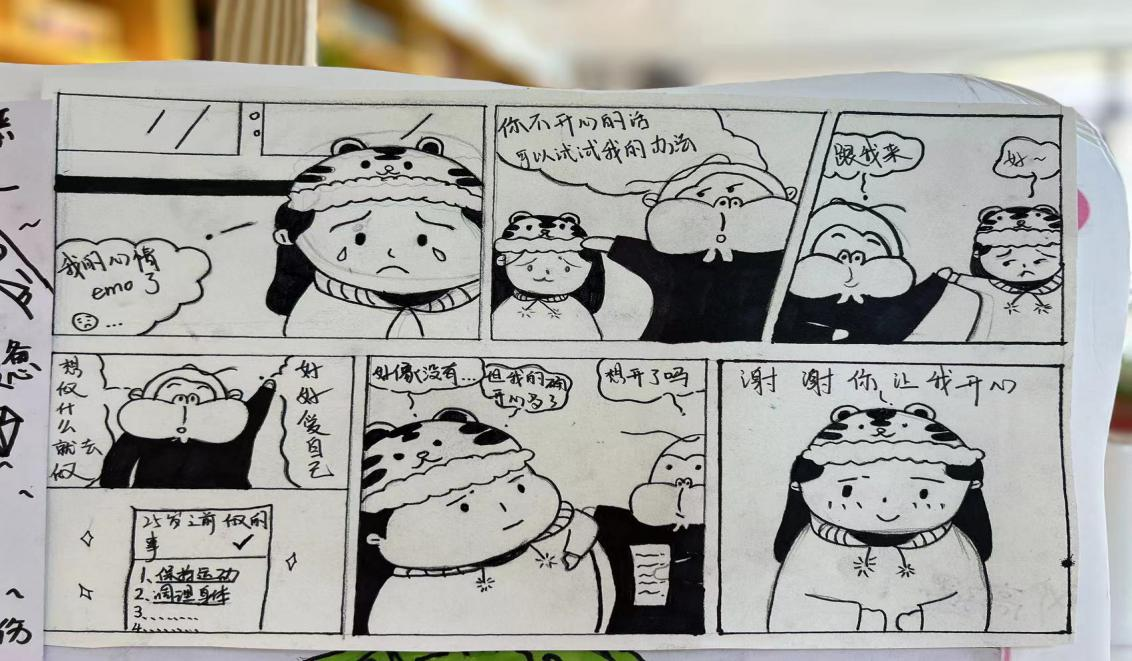 本次绘画大赛,同学们展示了自己视角的《情绪》,可以是爱笑的小女孩,可以是忧郁的少年,可以是情感丰富的海绵宝宝,也可以是连续载体的漫画,无论什么体裁,都可以从画中看到画者当时的状态和情绪体。