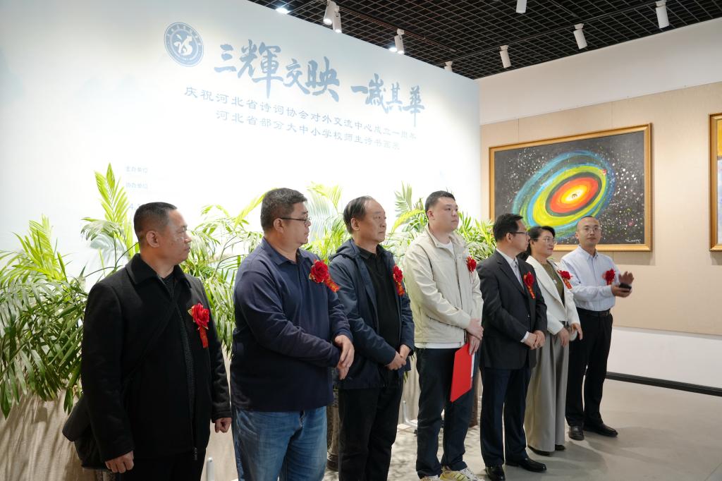 4月12日,“三辉交映一岁其华”庆河北省诗词协会对外交流中心成立一周年暨部分大中小学校师生诗书画展开幕仪式在卧龙校区图书馆博观厅举行,石家庄博物馆原副馆长、著名画家马振东,燕赵晚报出版中心主编牛珍涛,开云kaiyun登录入口副校长李同鑫,石家庄市电视台主持人李星,出席开幕仪式。河北省诗词协会对外交流中心全体人员、河北艺术职业学院、河北经济管理学校教师代表,以及开云官网各二级单位师生代表50余人参加。仪式由河北省诗词协会对外交流中心副秘书长、开云官网对外交流中心主任李芳主持。