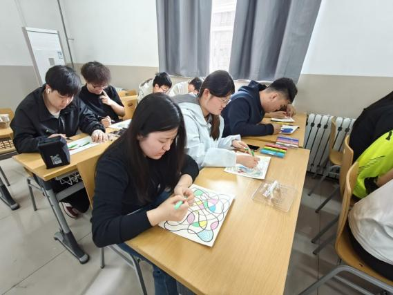 活动现场,同学们卸下了对“画得好不好”的顾虑,“一开始有点紧张,不知道画什么,后来跟着自己的感觉涂,突然觉得心里的烦躁好像也跟着慢慢散开了。”一位参与活动的同学这样说道。在这段与自我对话的过程中,大家不用追求技法,只需跟着直觉走,让情绪在色彩中慢慢舒展。