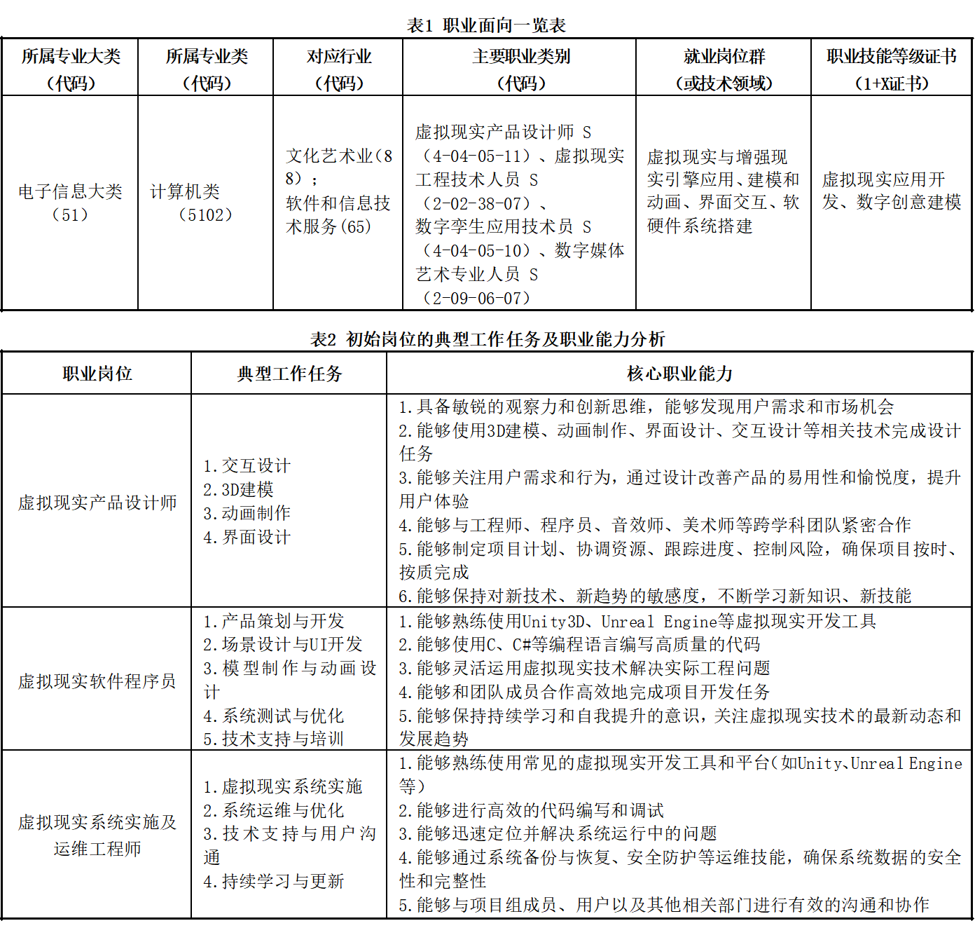 为适应科技发展、技术进步对行业生产、建设、管理、服务等领域带来的新变化,顺应软件与信息技术服务业、文化艺术业等行业数字化、网络化、智能化发展的新趋势,对接新产业、新业态、新模式下虚拟现实与增强现实引擎应用、建模和动画、界面交互、软硬件系统搭建等岗位(群)的新要求,不断满足虚拟现实产业高质量发展对高素质技能人才的需求,推动职业教育专业升级和数字化改造,提高人才培养质量。