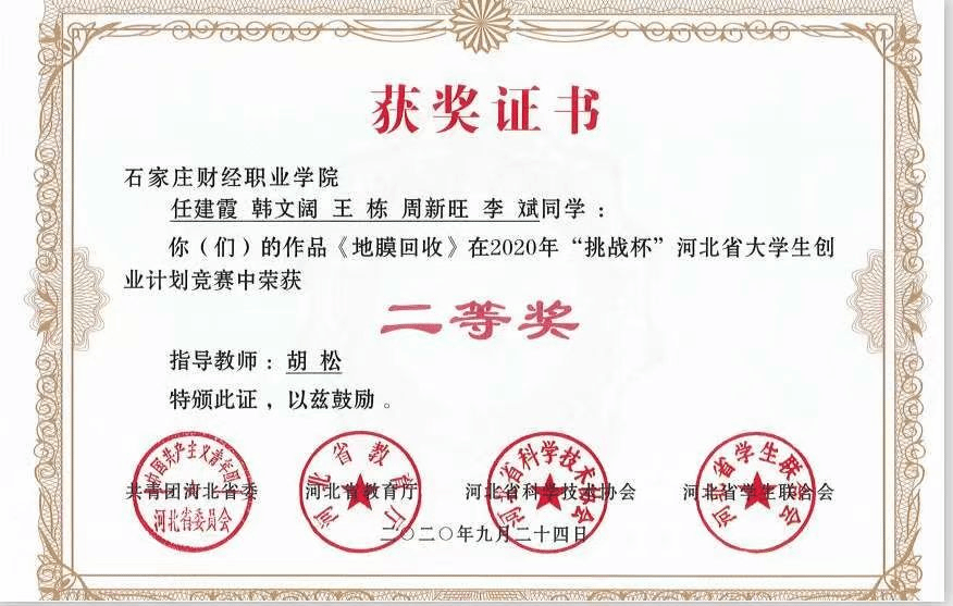 2020年河北省“挑战杯”二等...