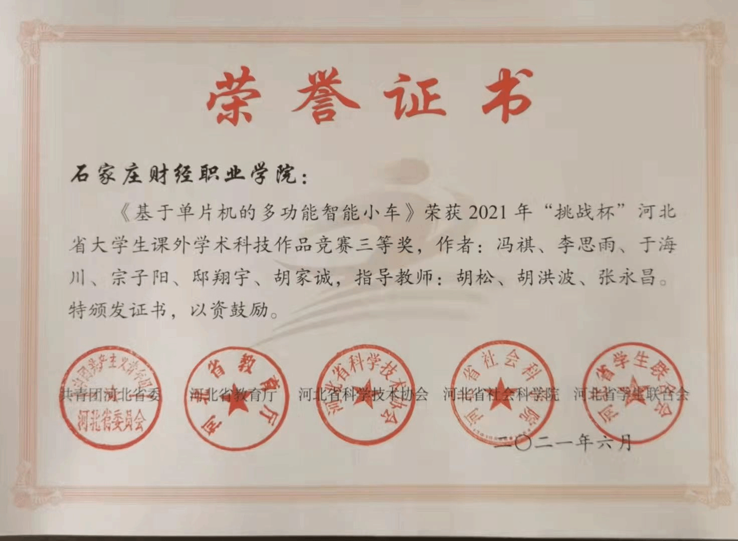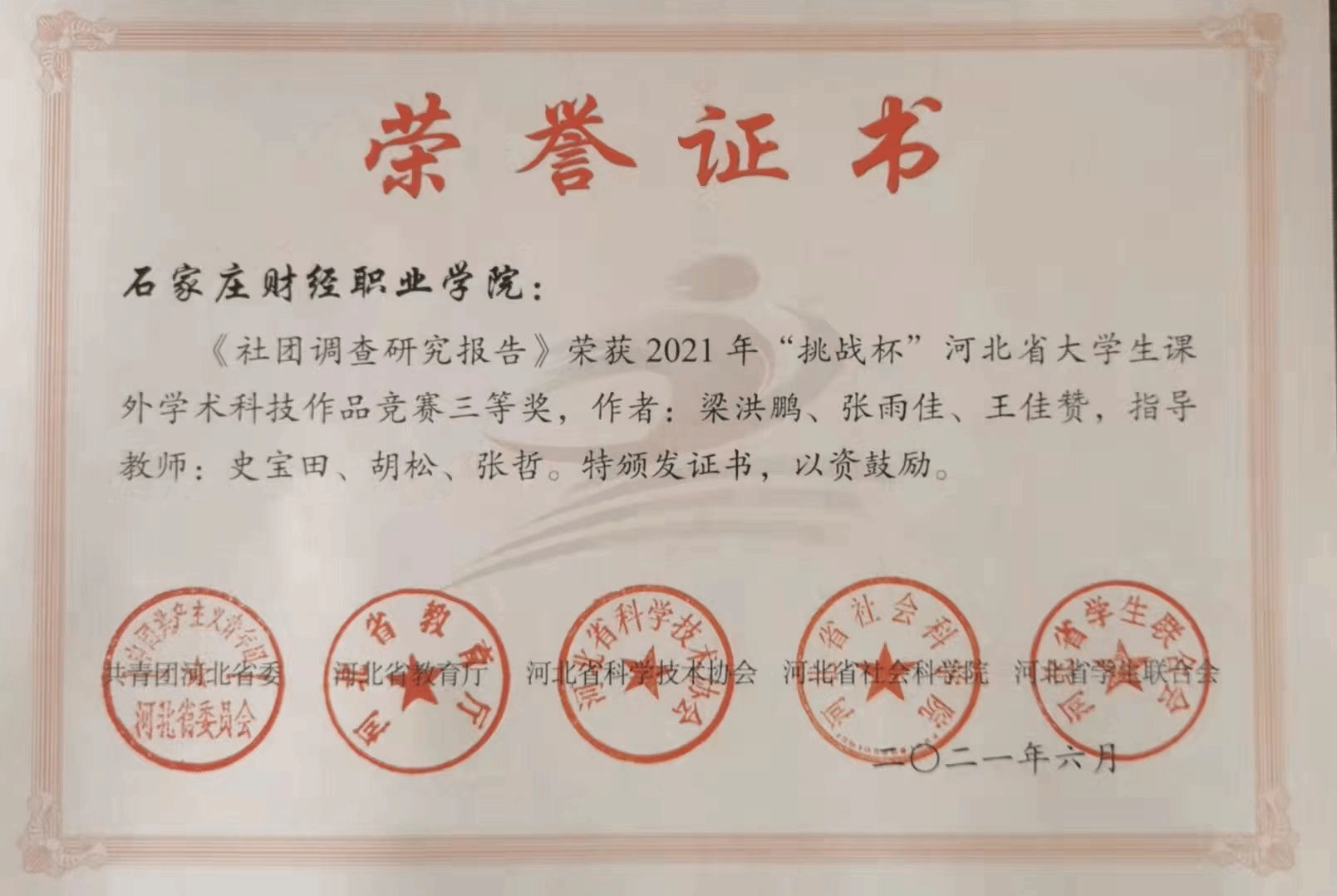 2021年“挑战杯”河北省三等...
