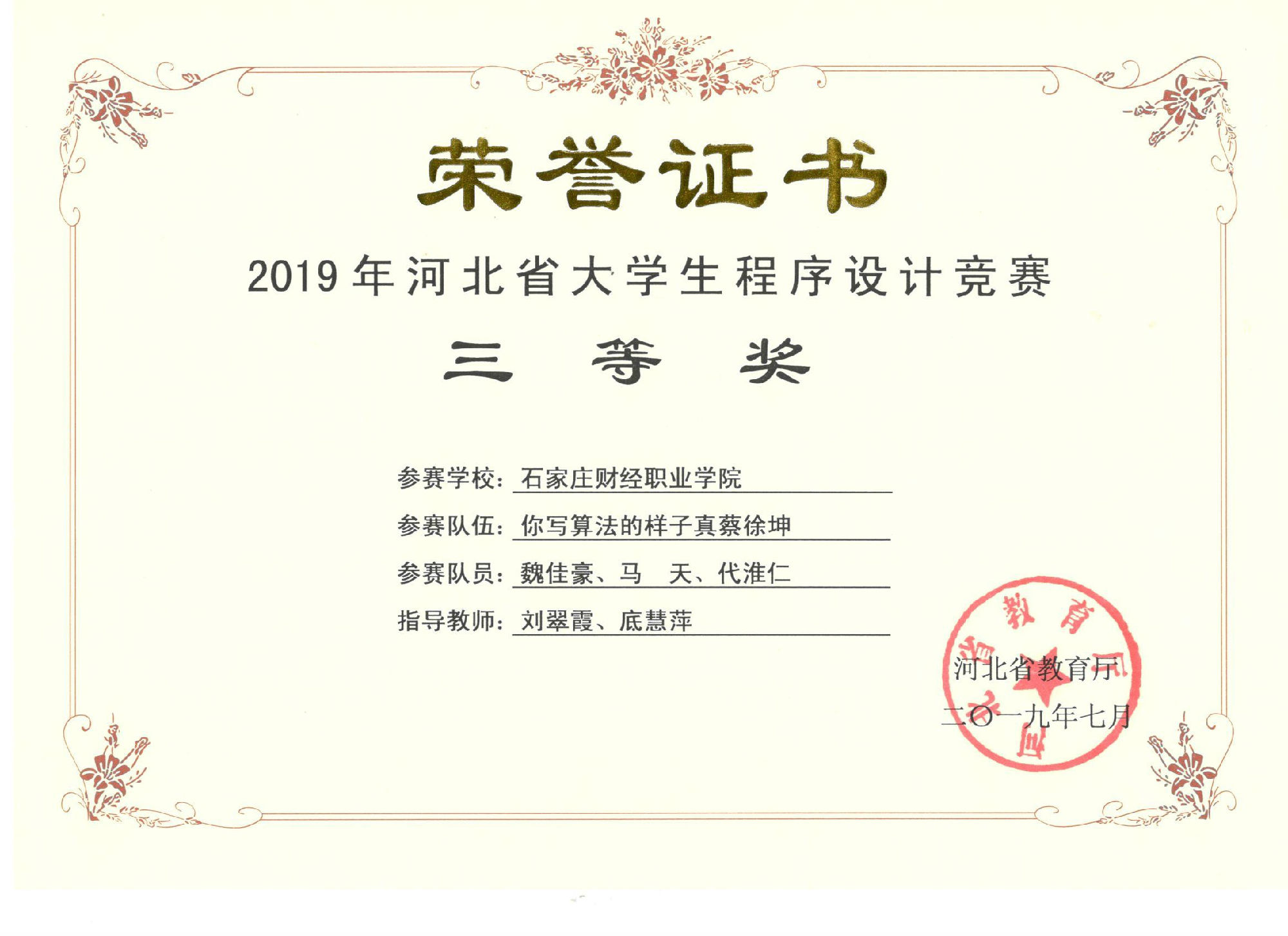 2019中国高校计算机大赛三等...